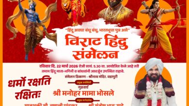 वडापुरी (ता इंदापूर) येथे उद्या रविवार दिनांक २२ मार्च रोजी सायंकाळी ५.३० वाजता सकल हिंदू समाजाच्या वतीने हिंदू संमेलनाचे आयोजन…